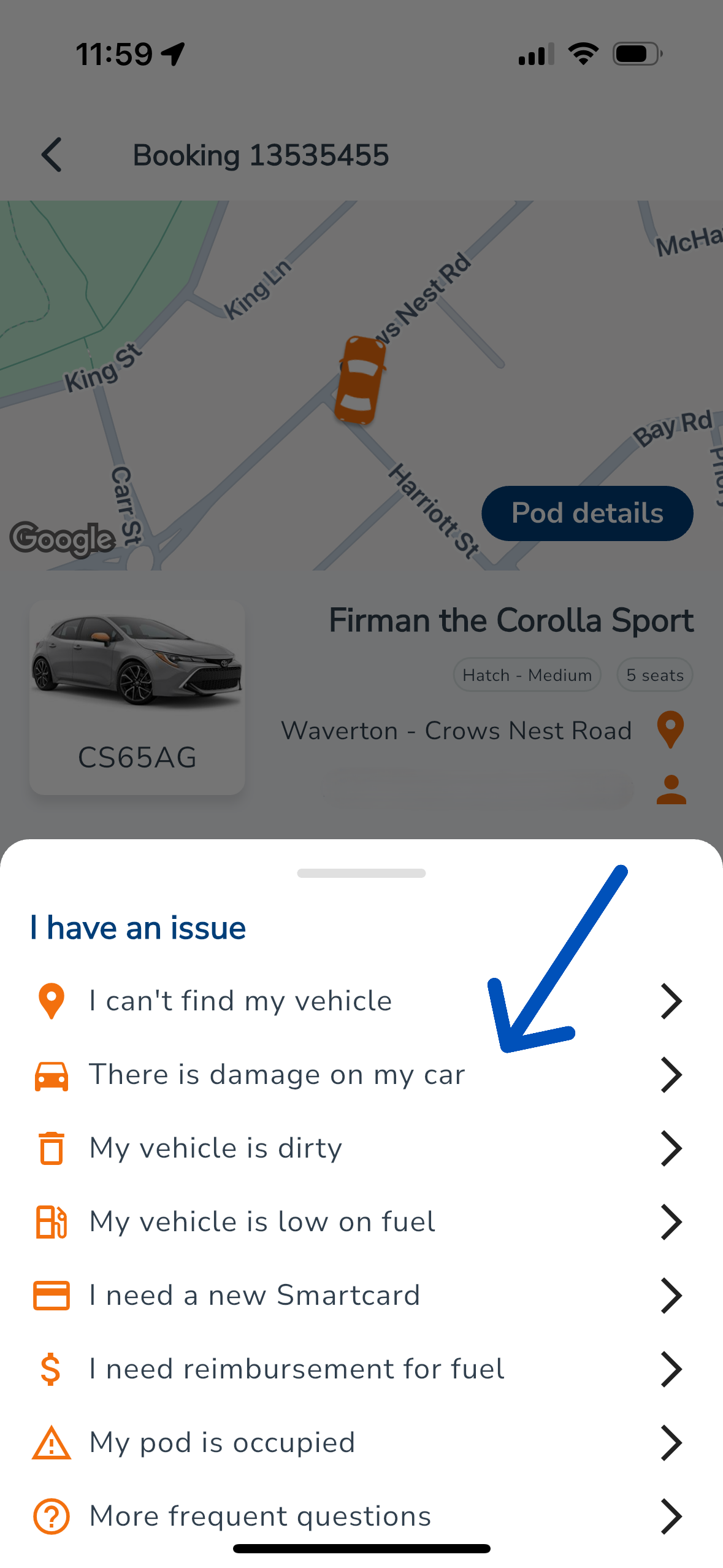 - Scroll down to I have an issue with my booking