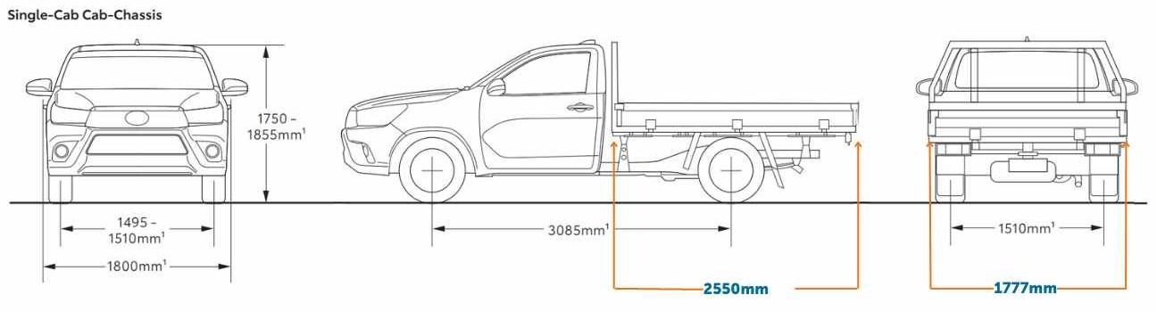 Our Toyota Hilux 4x2 Workmate ute tray dimensions
